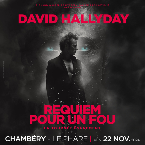 Afficher le planLA TOURNÉE CENT POUR CENT HALLYDAY. En décembre 2017 Johnny nous quitte, en laissant derrière lui des millions de fans orphelins de leur Idole… Un seul homme peut revendiquer la légitimité et le talent pour rallumer le feu sur scène et remettre le nom « HALLYDAY » dans le cœur de millions de fans. Artiste unique au talent immense, multirécompensé et estimé de tous, il a composé «SANG POUR SANG», l’album le plus vendu de son père qui scellera leur réconciliation. Cet artiste, cet homme, ce fils, c’est : DAVID HALLYDAY ! REQUIEM POUR UN FOU : L ’EVENEMENT DE L’ANNÉE Un spectacle unique en son genre, deux heures de musique qui permettront de découvrir sur scène les répertoires mêlés des deux artistes, la vision unique d’un fils sur l’œuvre de son père, comme un pacte. Un spectacle hors du temps où il est question de filiation, de transmission, et d’amour… REQUIEM POUR UN FOU, un show sang pour sang HALLYDAY